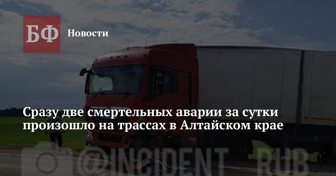 Как рассказали участники сообщества «Инцидент Рубцовск» «ВКонтакте», первая авария произошла 28 июня вечером между селами Поспелиха и Шипуново. По информации очевидцев, водитель легкового автомобиля уснул за рулем и допустил столкновение с фурой. В результате ДТП его пассажира выбросило в окно, и от полученных травм на месте происшествия он скончался до приезда «скорой помощи». Сам водитель тоже получил травмы, был госпитализирован.