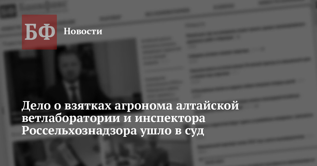 Завершено расследование уголовного дела в отношении бывших ведущего агронома алтайской государственной ветлаборатории и инспектора краевого управления Россельхознадзора. Как сообщает СУ СКР по Алтайскому краю, материалы в отношении обвиняемых в получении взятки на сумму 3,8 млн рублей были переданы в суд. Ранее стало известно, что для задержания фигурантов правоохранители провели масштабную спецоперацию.