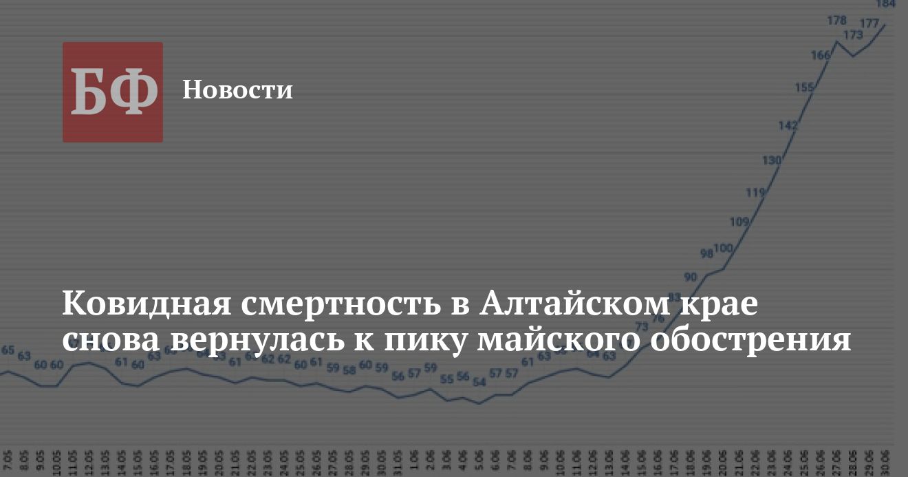 В Алтайском крае за прошедшие сутки зарегистрировано 184 новых случая заболевания коронавирусной инфекцией — и это в три раза больше, чем фиксировали месяцем ранее. При этом выздоровело всего 16 пациентов, а умерло 12 человек, от COVID-19 — восемь. В последний раз такой высокий показатель смертности отмечался в начале мая.
