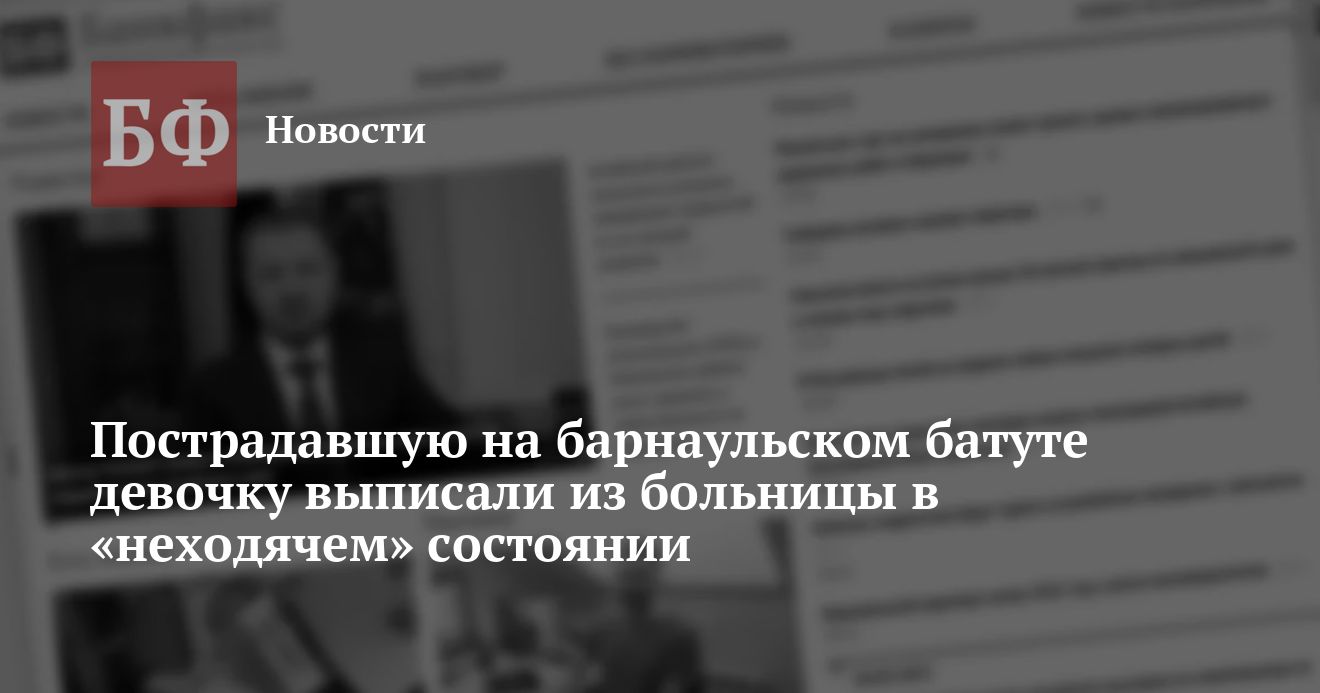 Медики выписали из больницы четырехлетнюю барнаульскую девочку, которая получила наиболее тяжелые травмы после опрокидывания батута возле ТЦ «Район». Как сообщает портал «Вести22», ей еще предстоит длительная реабилитация — только недавно у нее восстановились речь и слух. Однако пока под вопросом возможность ходить.