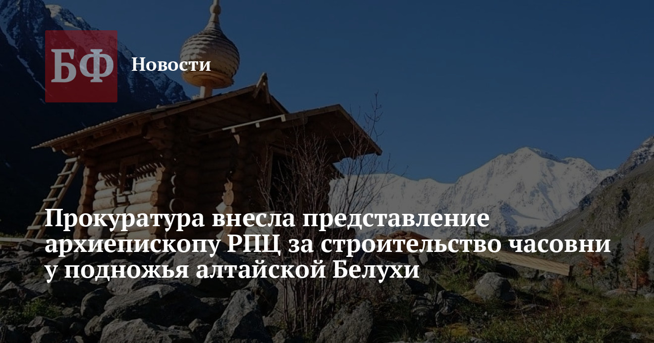 Прокуратура Усть-Коксинского района внесла представления главе муниципалитета Олегу Акимову и архиепископу Горноалтайскому и Чемальскому Калистрату за строительство православной часовни у подножья священной для местного населения горы Белухи, на территории особо охраняемой природной территории. Как следует из ответа ведомства на обращение общественника Василия Кудирмекова, никаких правоустанавливающих документов на участок под объектом у религиозной организации не было. Несмотря на это, строительство идет полным ходом и близится к завершению. Сейчас, как рассказал Кудирмеков «Банкфаксу», здание уже почти готово.