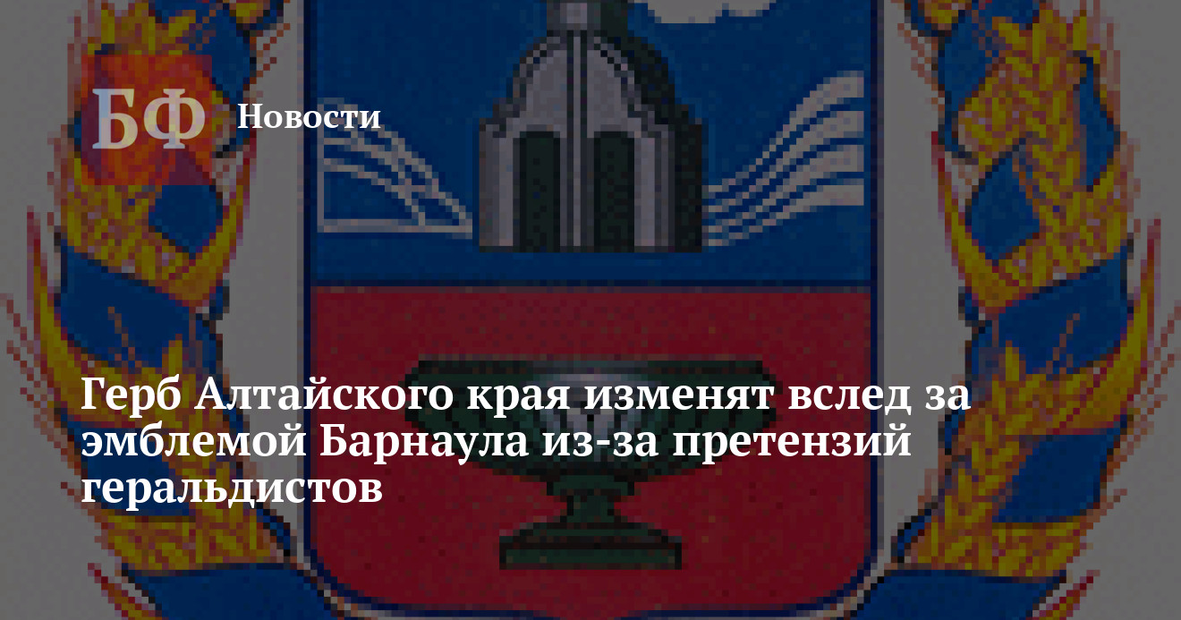 Герб Алтайского края вызвал вопросы у членов геральдического совета при президенте РФ. Как рассказал «Банкфаксу» пресс-секретарь губернатора региона Дмитрий Негреев, символ края, скорее всего, изменят и приведут в соответствие с геральдическими правилами к осени следующего года. Кроме того, модификациям, вероятно, подвергнутся и гербы других муниципалитетов региона, чьи композиции нарушают устоявшиеся нормы.
