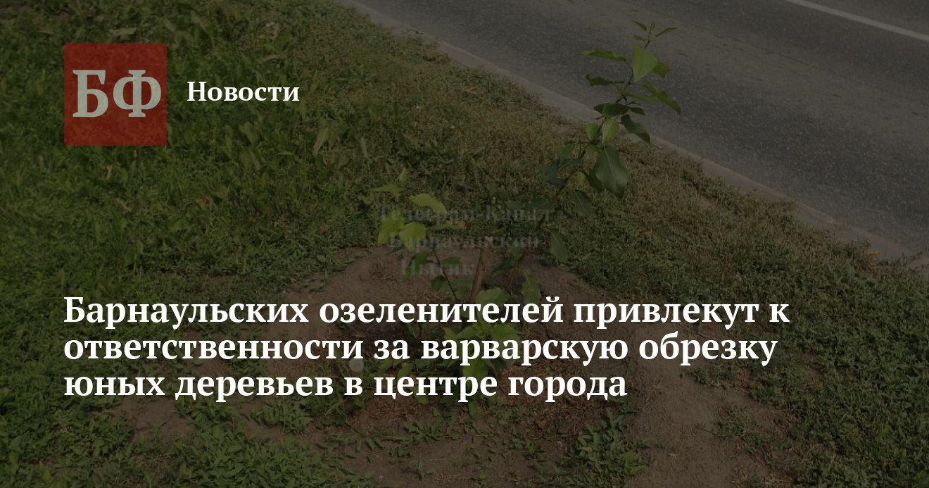 В начале августа в Telegram-канале «Барнаульский нытик» появились фотографии молодых тополей на проспекте Ленина, которые варварски были обрезаны до такой степени, что от некоторых из них остались лишь «столбики» без листвы и веток. Под «раздачу» попали даже совсем маленькие саженцы, помещенные в грунт совсем недавно. В комитете по дорожному хозяйству, благоустройству, транспорту и связи города «Банкфаксу» объяснили, что мероприятия по обрезке на этом участке действительно проводились, но не в этом сезоне, а ранее — около 1−2 лет назад. Тогда специалисты МБУ «Благоустройство и озеленение» допустили нарушения при проведении работ, последствия которых горожане почему-то заметили только сейчас. В администрации это объясняют тем, что внимание к участку, скорее всего, привлек недавно обломившийся из-за сильного ветра тополь, который также убирали сотрудники МБУ.