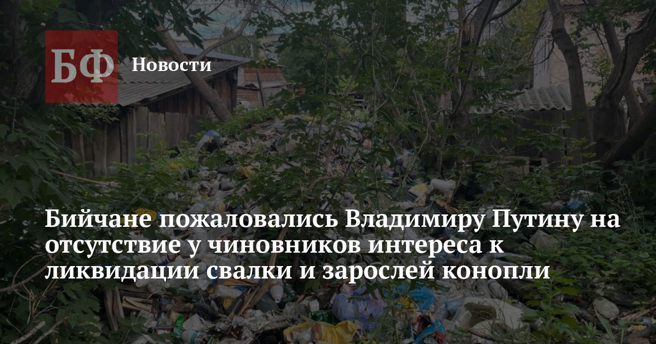 Общественники из ОНФ рассказали об очередном обращении жителей Алтайского края, ранее поступившем на «Прямую линию» с президентом России Владимиром Путиным. На этот раз жалоба исходила от бийских пенсионеров, возмущенных тем, что городские власти не реагируют на их просьбы расправиться со стихийной свалкой и зарослями конопли.