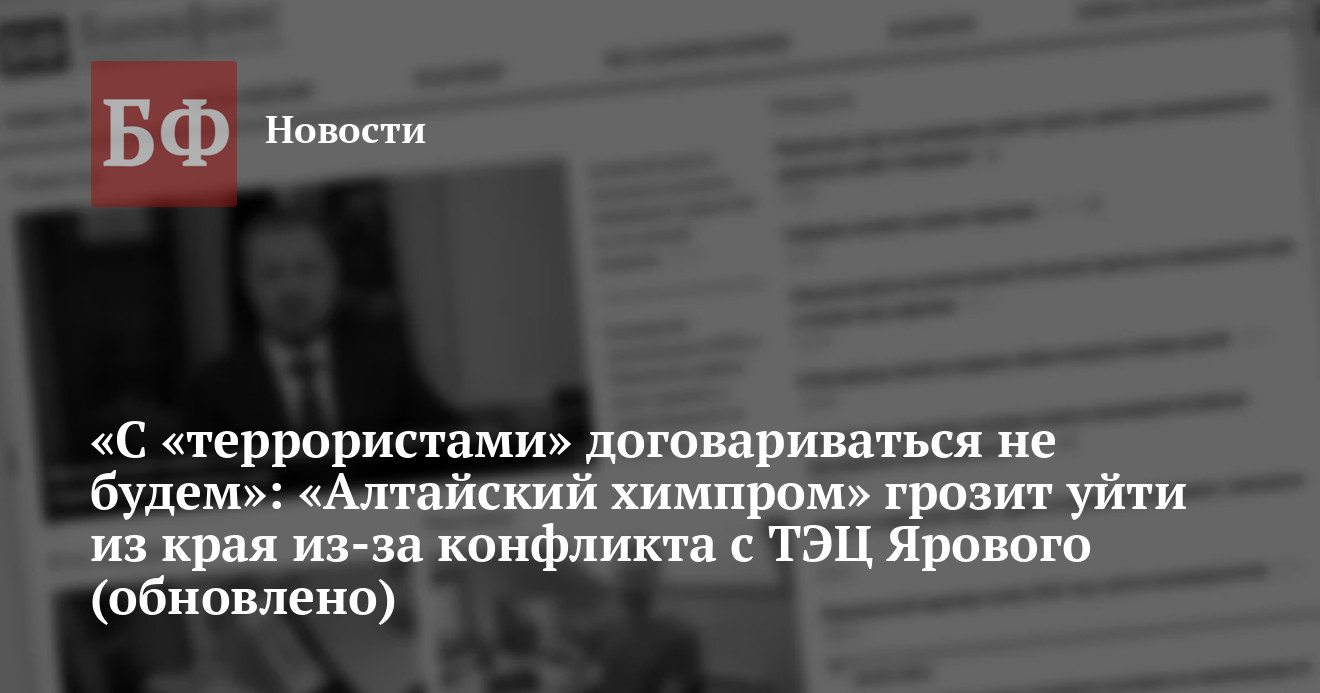 UPD 14:43: Как сообщили ИА «Банкфакс» в правительстве Алтайского края, власти региона и Минпромэнерго в частности оказывают содействие руководству «Алтайского химпрома» по всем возникающим вопросам. «Мы заинтересованы в эффективной работе завода, и со своей стороны предпринимаем меры, чтобы предприятие развивалось, выходило на новые рынки сбыта и создавало новые рабочие места. Ряд проблем, озвученных представителем АО „Алтайский Химпром“, действительно, имеют место. Для их решения правительство Алтайского края работает с администрацией Ярового (например, в части отпуска пара); по вопросам, связанным с дальнейшим развитием предприятия, правительство региона и Минпромэнерго продолжают взаимодействие с собственниками», — проинформировали власти.