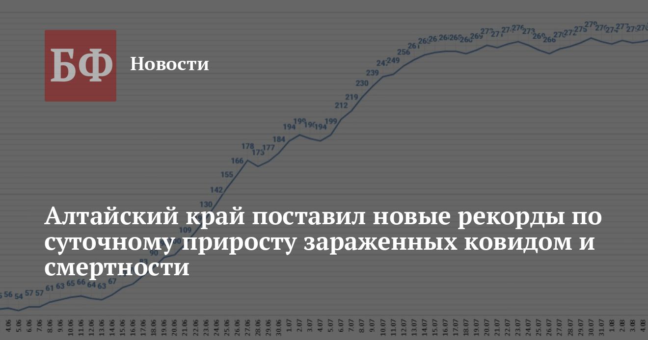 За последние три дня в Алтайском крае выявили 830 случаев заражения коронавирусом. 6 августа прирост инфицированных составил 280, что является наивысшим результатом за всю пандемию. Также по данным оперштаба, за трое суток скончалось 70 человек. 7 августа умерло 26 граждан, чего ранее также не происходило.