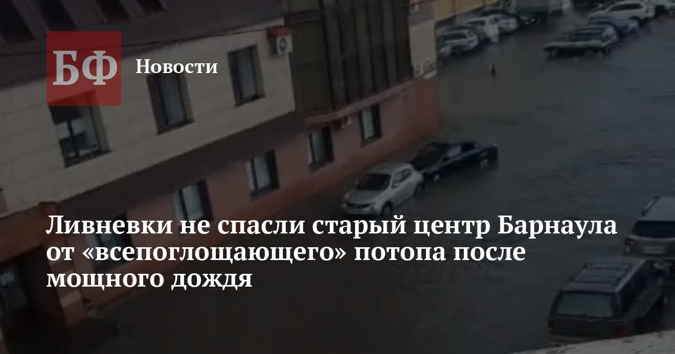 12 августа жители Октябрьского и Центрального районов Барнаула делились в Сети снимками и видеороликами, на которых был запечатлен разгул стихии. На краевой центр обрушился настоящий ливень, который длился довольно долго и успел затопить дороги и тротуары до такой степени, что авто не могли проехать, а пешеходы погрузились в воду как минимум по колено. При этом горожане не преминули выразить сожаления о том, что ливневая канализация не справилась со своими функциями и не спасла старый Барнаул от потопа.