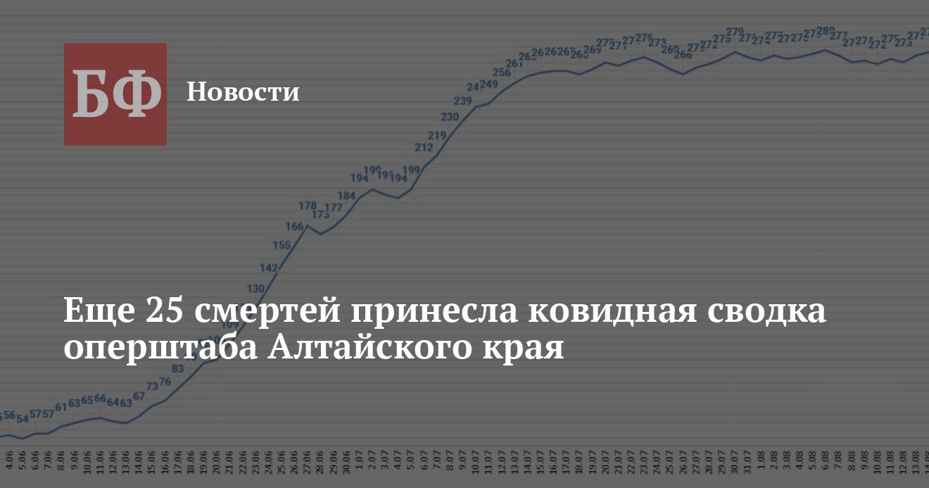 За минувший день в Алтайском крае зафиксировали 269 случаев коронавируса. По данным оперштаба скончалось 25 человек.