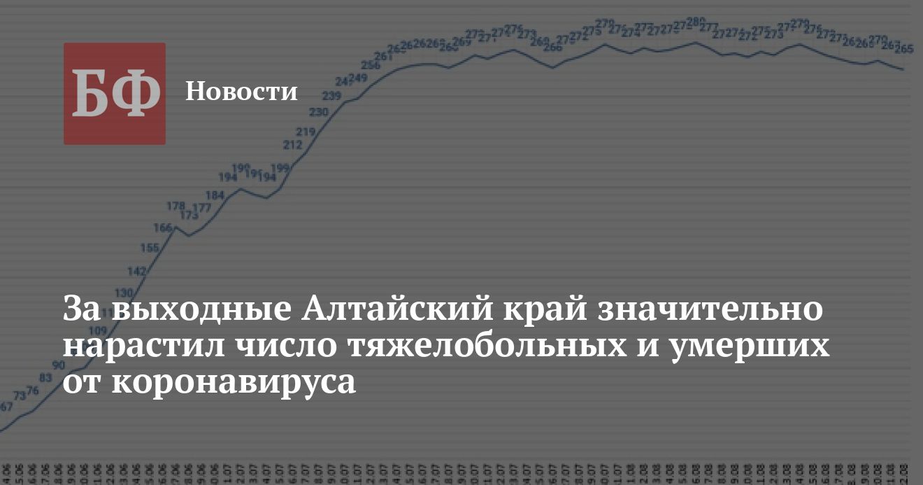 В Алтайском крае за прошедшие трое суток было зарегистрировано 802 новых случая заболевания коронавирусной инфекцией. При этом выздоровело 367 пациентов, а умерло 72 человека. Примечательно и то, что за выходные значительно выросло число тяжелобольных, в том числе тех, кто находится под аппаратом ИВЛ.