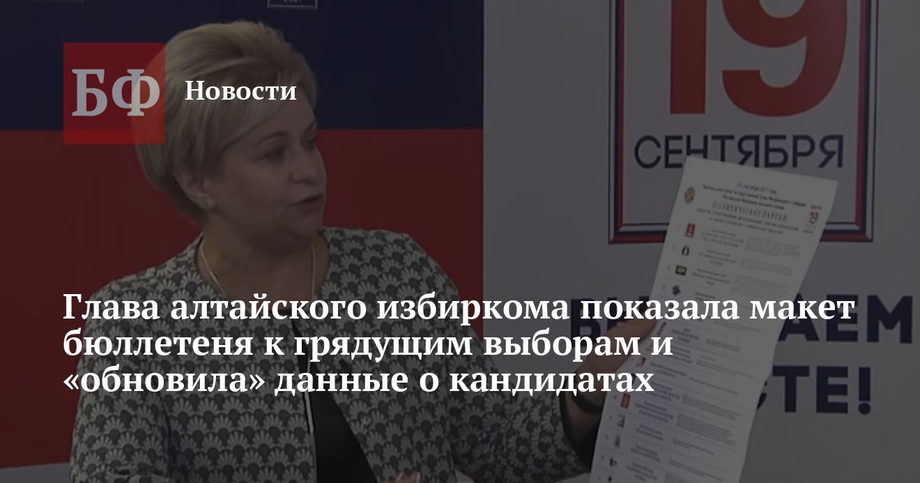 Подготовка к выборам депутатов Госдумы и Алтайского Заксобрания в крае уже подходит ключевому этапу. В ходе онлайн-конференции руководитель избирательной комиссии региона Ирина Акимова продемонстрировала, как примерно будут выглядеть информационные материалы и бюллетени. Также она упомянула про судебные разбирательства, связанные с регистрацией отдельных кандидатов, которые в результате соответствующих решений могут лишиться пассивного избирательного права.