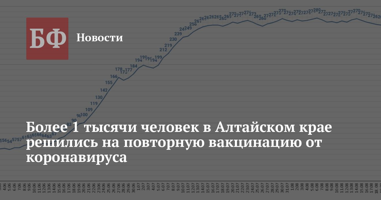 Всего в крае провели 1 919 585 тестов на коронавирусную инфекцию. Среднесуточный охват тестированием жителей края составил 250,57 исследований на каждые 100 тысяч жителей или 4524 человека в день. Количество тестирований с учетом повторных исследований — 4664 за минувшие сутки. В общей сложности в Алтайский край для медицинских организаций поступило 782 793 комплекта вакцины против коронавирусной инфекции. На утро 24 августа в Алтайском крае против COVID-19 прививается 601 107 человек, из них 128 026 получили первую прививку, а 471 955 — полностью привиты (получили две прививки). 1126 человек прошли повторную вакцинацию.