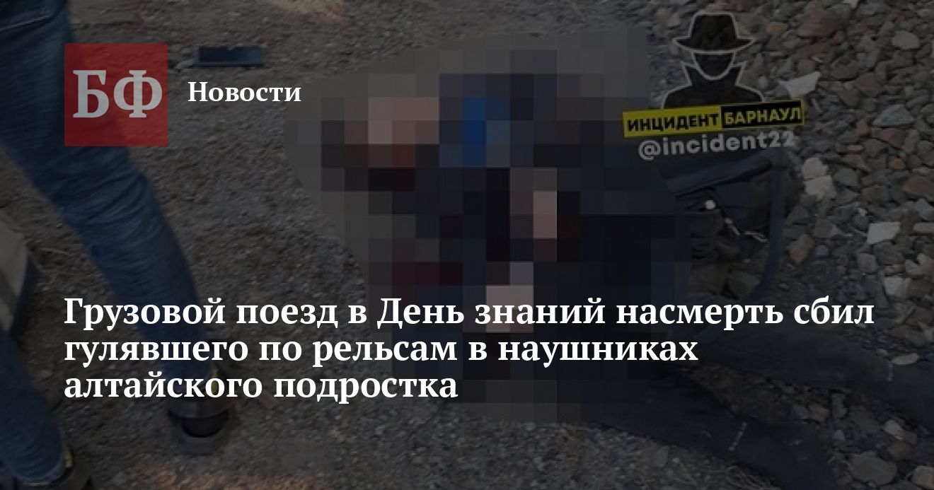 1 сентября на станции Табуны в Алтайском крае было обнаружено окровавленное тело подростка. Как сообщает «Инцидент Барнаул» «ВКонтакте», его сбил грузовой поезд. По информации сообщества, подросток переходил железнодорожные пути в наушниках и не заметил приближающийся состав.