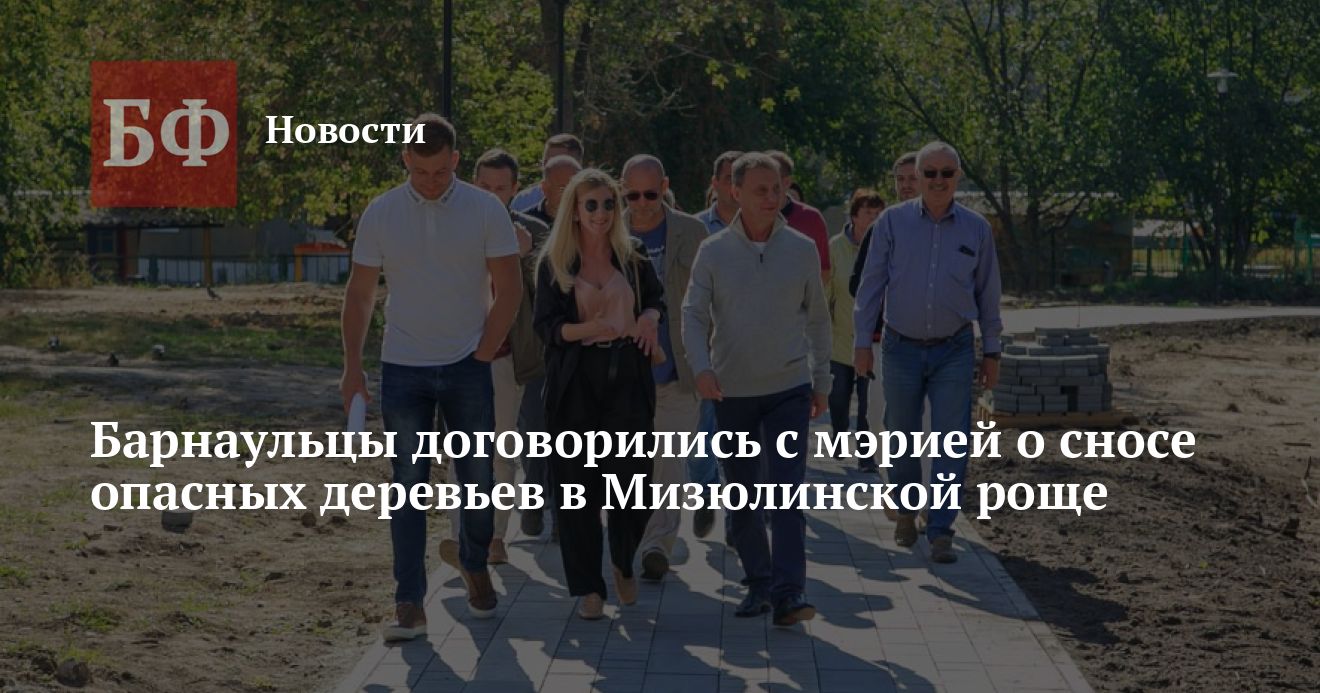 Обсуждение работ по облагораживанию Мизюлинской рощи проходило с участием мэра, других чиновников и политиков, а также жителей микрорайона. Представитель инициативной группы граждан Людмила Пожидаева рассказала Вячеславу Франку о волнующих горожан вопросах, на которые необходимо обратить внимание для сохранения будущего общественного пространства. Например, барнаульцы предложили срубить три тополя недалеко от детской площадки. По их мнению, они могут нести опасность во время неблагоприятных погодных условий. После обсуждения эту просьбу решили удовлетворить. Проводилось ли исследование данных насаждений на признаки аварийности, не уточняется. Глава города отметил, что вопрос безопасности, а тем более детей, первоочередный. Он также добавил, что взамен срубленных деревьев могут высадить дополнительные.