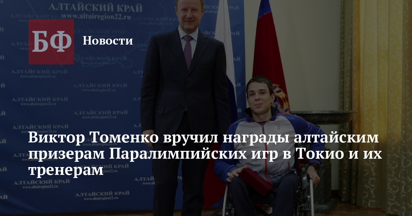 15 сентября в правительстве Алтайского края состоялась торжественная церемония награждения региональных спортсменов, которые блестяще проявили себя на Паралимпиаде в Токио. Как подчеркнули в краевом кабмине, алтайские атлеты внесли весомый вклад в достижения российской спортивной команды: на их счету семь медалей — из них три золотые, одна серебряная и три бронзовые. Глава региона Виктор Томенко вручил им краевые награды и поблагодарил за их труд и волю к победе.