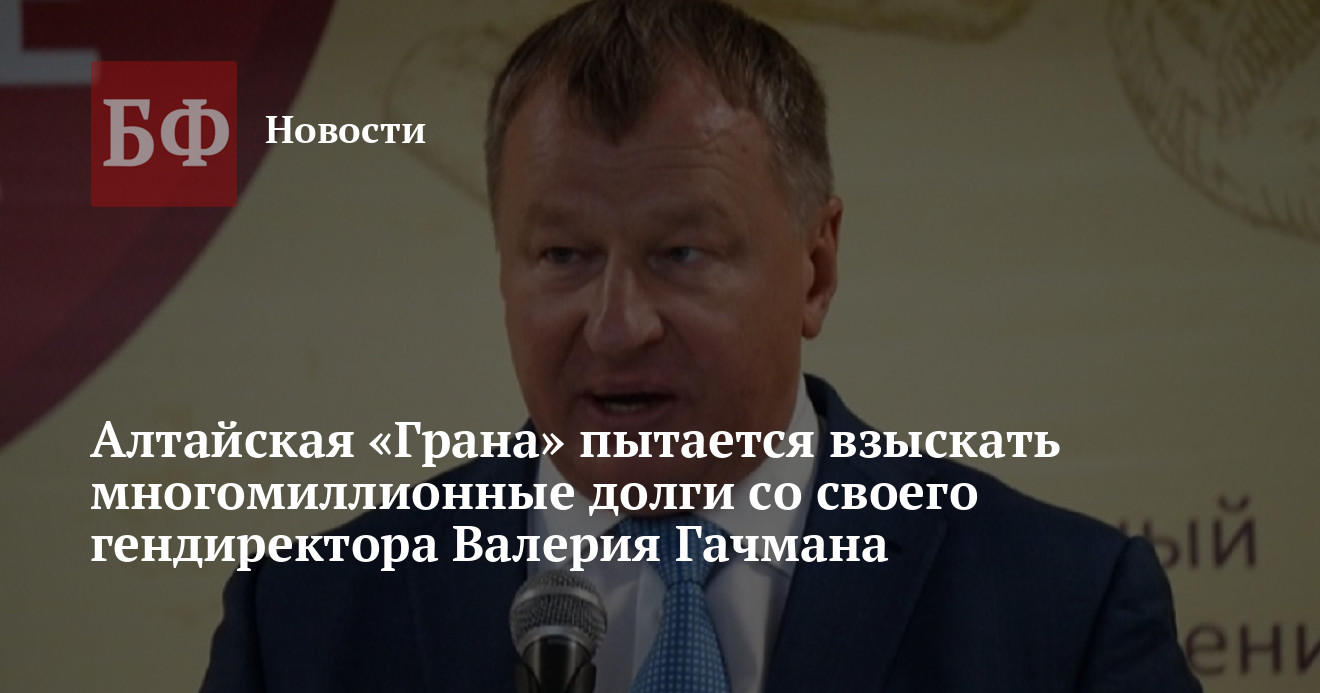 Арбитражный суд рассматривает заявление АО «Грана» к своему же гендиректору Валерию Гачману и входящему в объединение ЗАО «Табунский элеватор» о взыскании крупного долга. Судя по опубликованным в картотеке документам, речь идет о задолженности, исчисляемой десятками миллионов рублей, однако обстоятельства дела на данный момент не ясны.