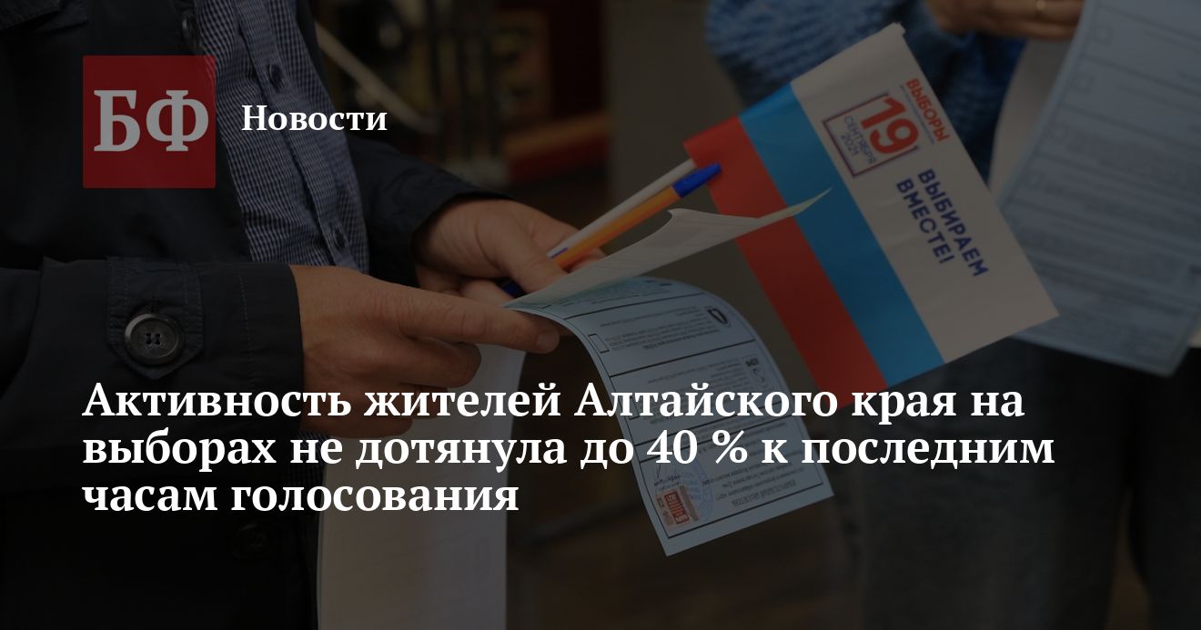 По предварительным данным, явка на парламентских выборах в Алтайском крае к 18:00 составила 38,28%. С момента последней временной отсечки в 15:00 проголосовало порядка 70 тысяч граждан. Всего на избирательные участки за три дня пришло 683 009 человек.