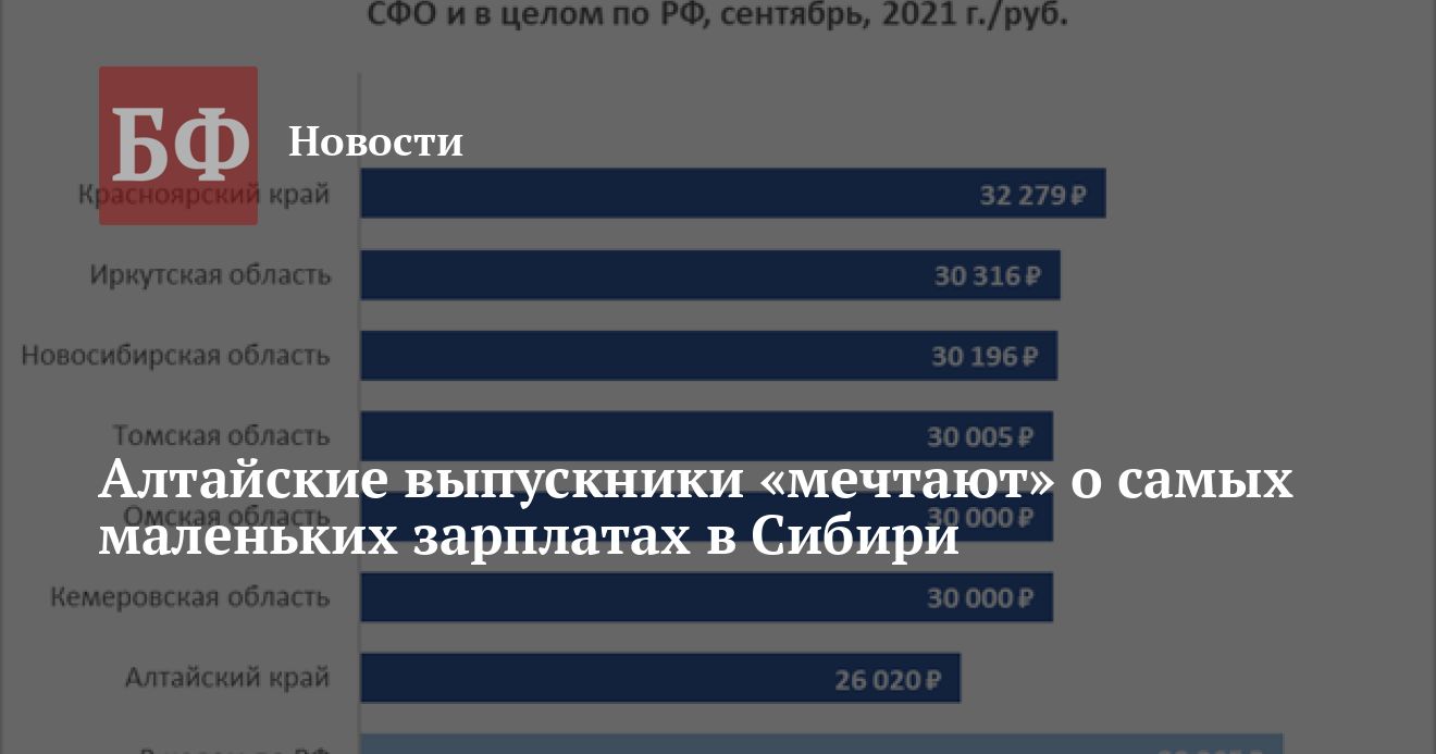 В разрезе регионов самые высокие запросы у молодых работников из Магаданской области (70 тысяч рублей), на Сахалине, в Ненецком и Чукотском АО (по 60 тысяч рублей). У сибирских выпускников ожидания куда ниже, чем в среднем по России: 32 279 рублей хотят получать молодые специалисты в Красноярском крае, 30 316 рублей — в Иркутской области, 30 196 рублей — в Новосибирской области, 30 005 рублей — в Томской области, 30 000 рублей — в Омской и Кемеровской областях. Наименьшие ожидания у молодежи в Алтайском крае — всего 26 020 рублей.