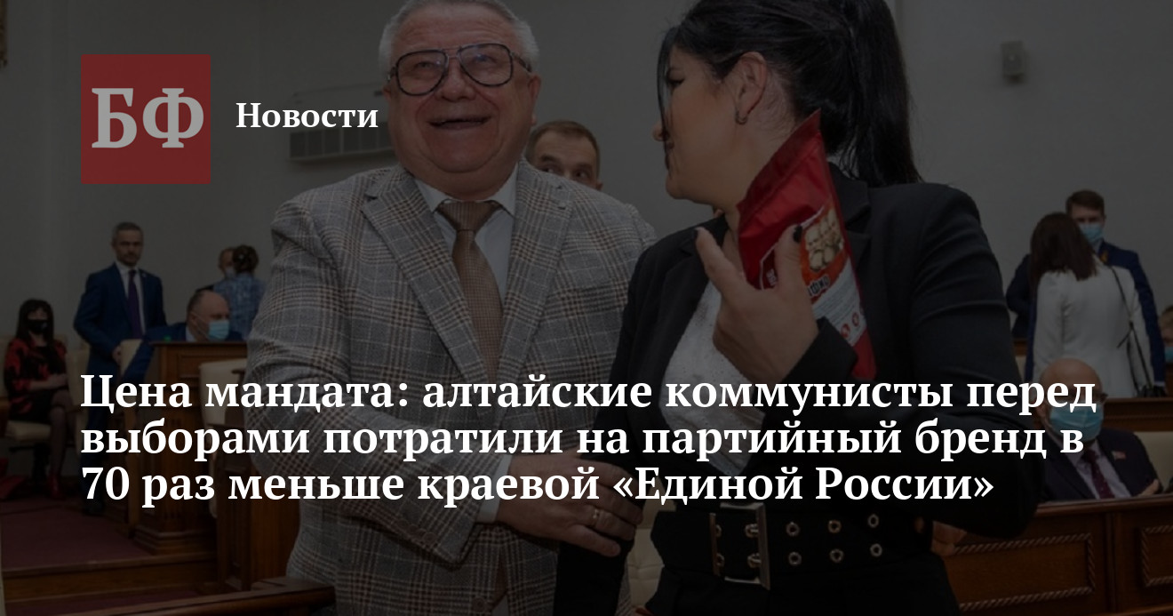 Избирком Алтайского края опубликовал сведения об общей сумме средств, поступивших в избирательные фонды партий и израсходованных ими в ходе кампании по состоянию на 13 сентября 2021 года. Оказалось, что каждая из партий заплатила свою цену за «списочное» место в Алтайском Заксобрании. Дешевле всего такие мандаты достались коммунистам, а вот больше всех за проведение списка в парламент пришлось заплатить единороссам.