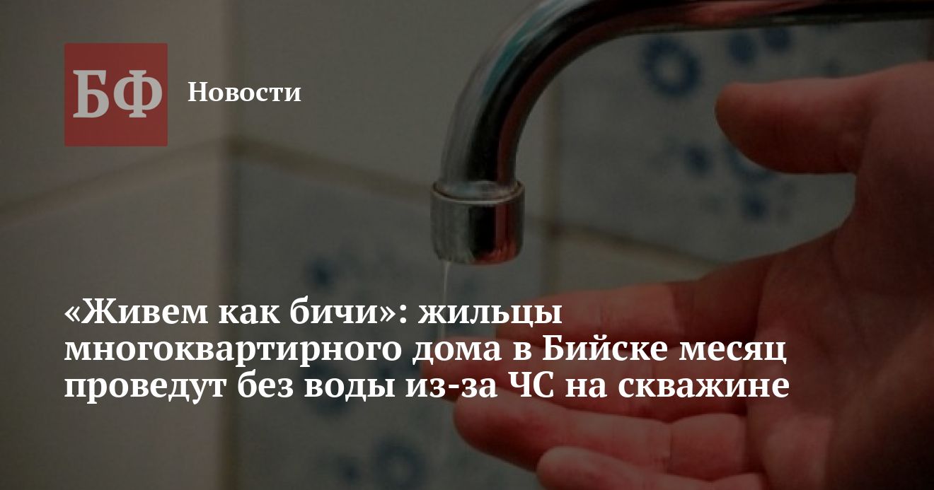 Бийчане, проживающие по улице Мамонтова в Бийске, сообщили в Сети, что уже несколько недель обходятся без горячей и холодной воды. При этом жильцы утверждают, что ранее не смогли добиться помощи от городских властей, в связи с чем обратились в прокуратуру. После того, как посты о ситуации появились в соцсетях, в администрации Бийска ИА «Банкфакс» подтвердили, что в указанном доме действительно нет воды из-за серьезного износа скважины, а меры на этот счет начали принимать несколькими днями ранее. Утром 27 сентября там был введен режим повышенной готовности. При этом вернуть воду в квартиры жильцов смогут только к концу октября — все это время жидкость им обещают подвозить.