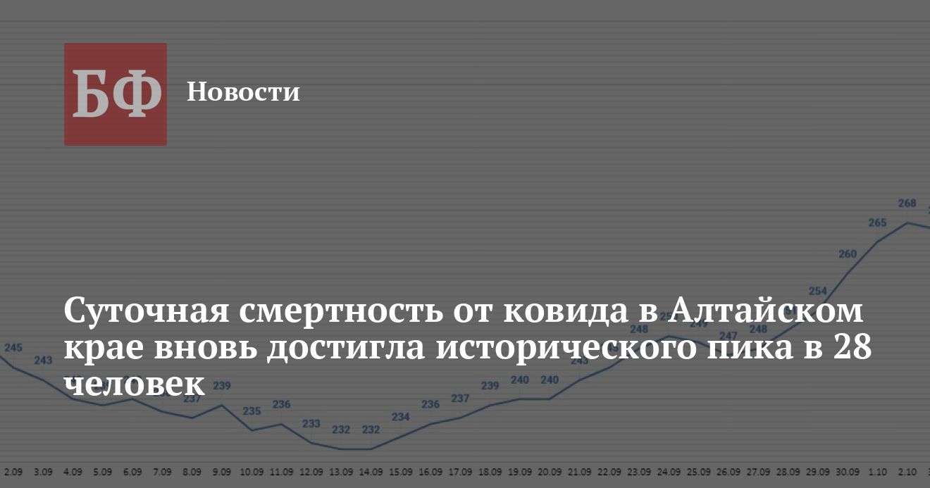 За минувшие сутки в Алтайском крае выявили 270 инфицированных коронавирусом. По данным оперштаба, умерло еще 28 человек, что на сегодня является максимальной планкой, которая была достигнута около двух недель назад.