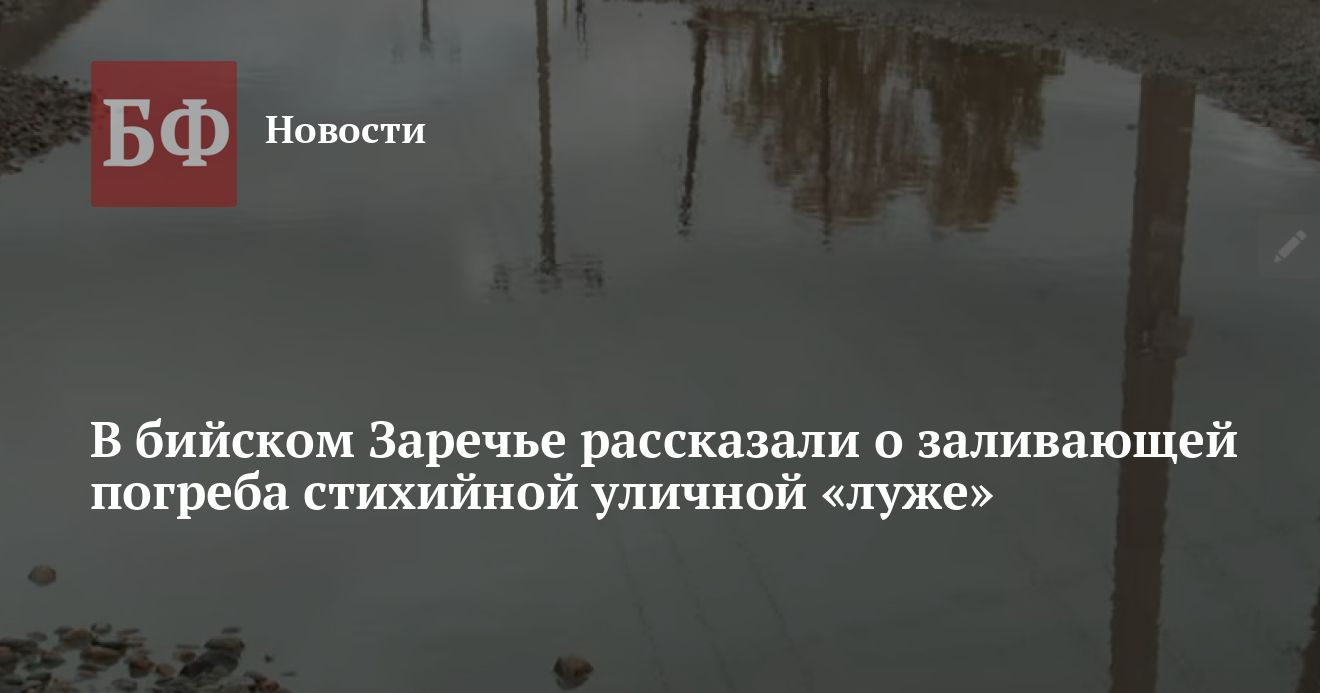 Бийчане сообщают, что на одной из улиц Заречья образовалась большая яма, где скапливается дождевая вода. Влаге некуда уходить, поэтому она разливается прямо во дворы местных жителей, затапливая их погреба и хозпостройки, сообщает «Бийский рабочий». Бийчане не могут решить проблему самостоятельно, а инициативы со стороны городских властей не наблюдается. В связи с этим жители города готовят обращение в мэрию и намерены записаться на личный прием к главе города.