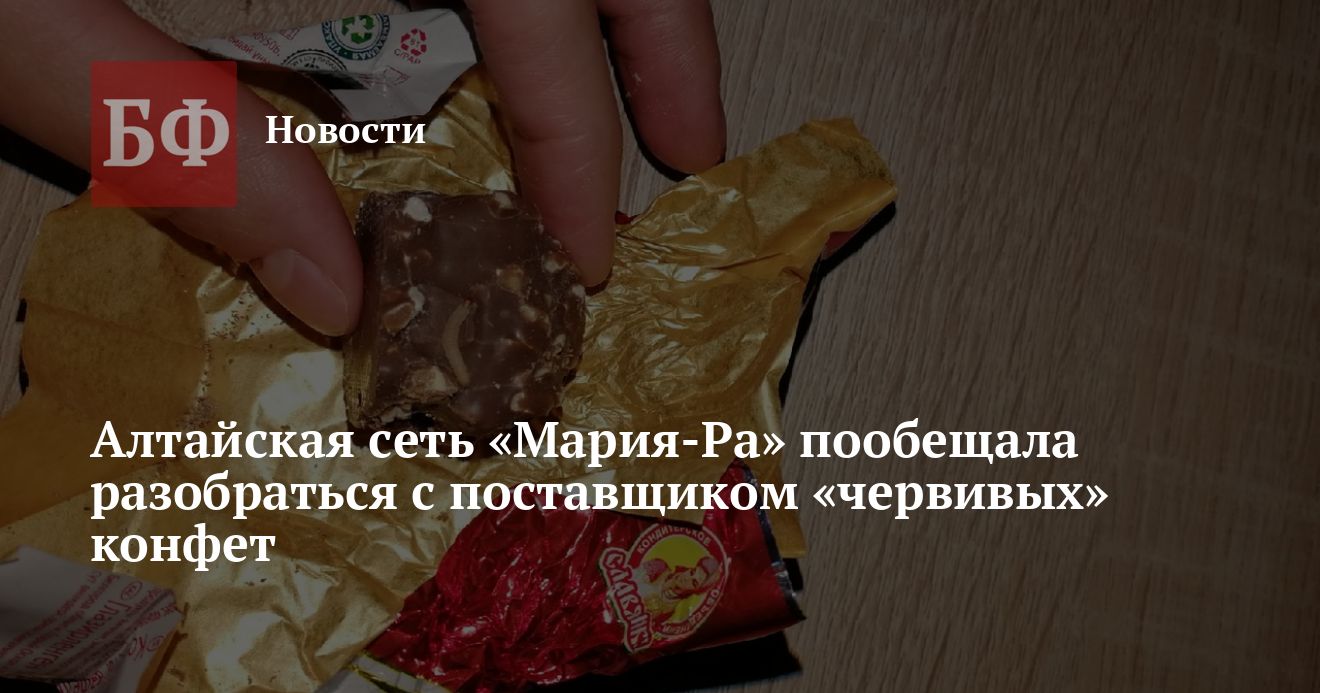 Информация о данном инциденте была опубликована в группе «Черный список Барнаул» «ВКонтакте». Женщина сообщила, что к семейному событию, намеченному на 5 октября, она приобрела конфеты «Маленькое чудо» в магазине «Мария-Ра» на улице Воровского, 113. Находившийся дома маленький ребенок успел съесть несколько штук, когда взрослые обнаружили в одной из конфет личинку червя. Развернув оставшиеся, барнаульцы убедились, что «сюрприз» был и в них. В связи с этим граждане намерены обратиться в алтайский Роспотребнадзор.