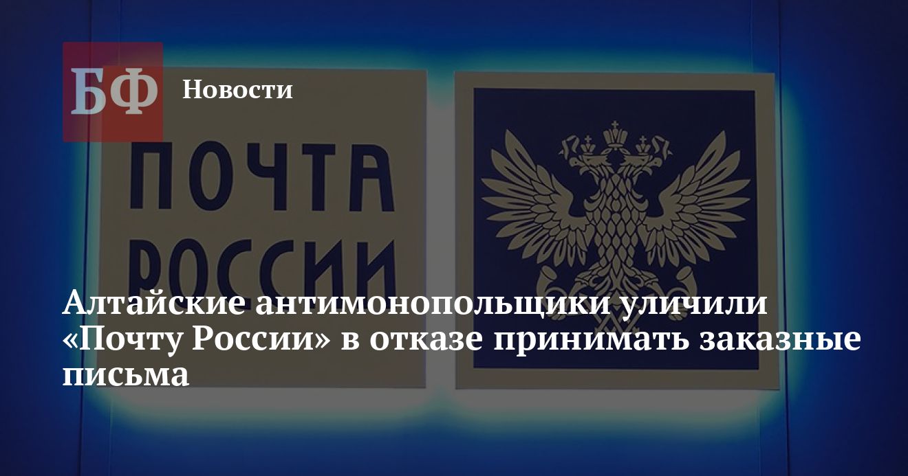 Алтайское краевое УФАС обязало АО «Почта России» не допускать необоснованного отказа в приеме и пересылке корреспонденции. Как сообщили в пресс-службе управления, в ведомство обратились барнаульцы, которые пожаловались, что у них не приняли заказные письма. На почте сослались на перегруженность. Антимонопольщики посчитали такие действия «Почты России» неправомерными и обязали устранить нарушения.