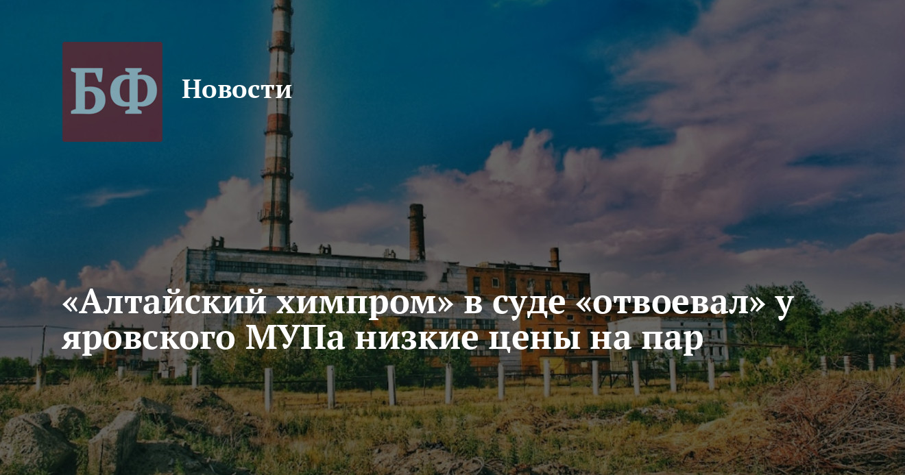 Спор между эксплуатантом ТЭЦ Ярового МУП ЯТЭК и ОАО «Алтайский химпром» разрешился в арбитраже. Конфликт касался цен на поставку пара от станции на производство: ресурсоснабжающая организация подняла их вместе с тарифом на тепловую энергию, что не устроило предприятие, но МУП решил вовсе не поставлять ресурс до признания этого повышения. Химпром обратился в суд с требованием признать односторонний отказ от поставок недействительным и в итоге, как указано на сайте арбитража, его удовлетворили. Однако есть основания полагать, что эти вопросы были решены между краевым правительством и собственниками завода еще до суда.