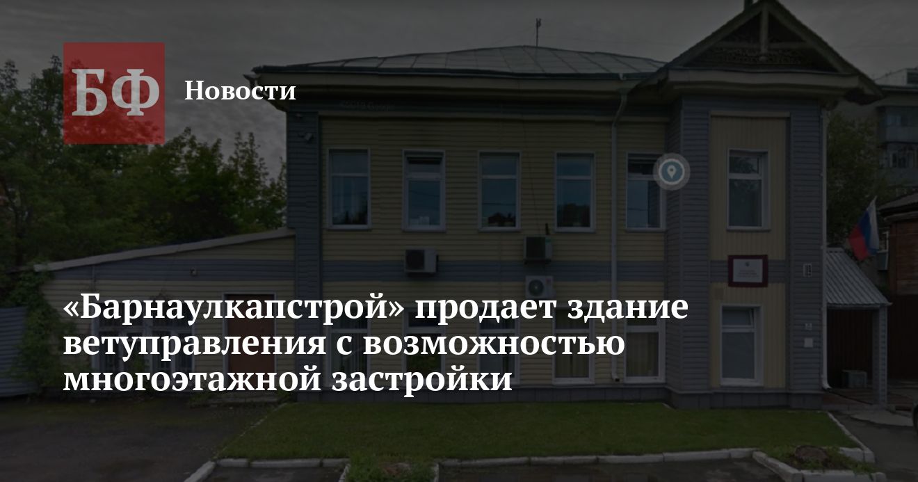 Находящийся в предбанкротном состоянии муниципальный застройщик «Барнаулкапстрой» (БКС) продолжает предпринимать попытки выправить свое финансовое положение за счет реализации активов. Как следует из информации с сайта объявлений Avito, на продажу выставлено здание на улице Короленко, 109, в котором находится один из офисов краевого управления ветеринарии. На данном участке возможно многоэтажное жилое строительство.
