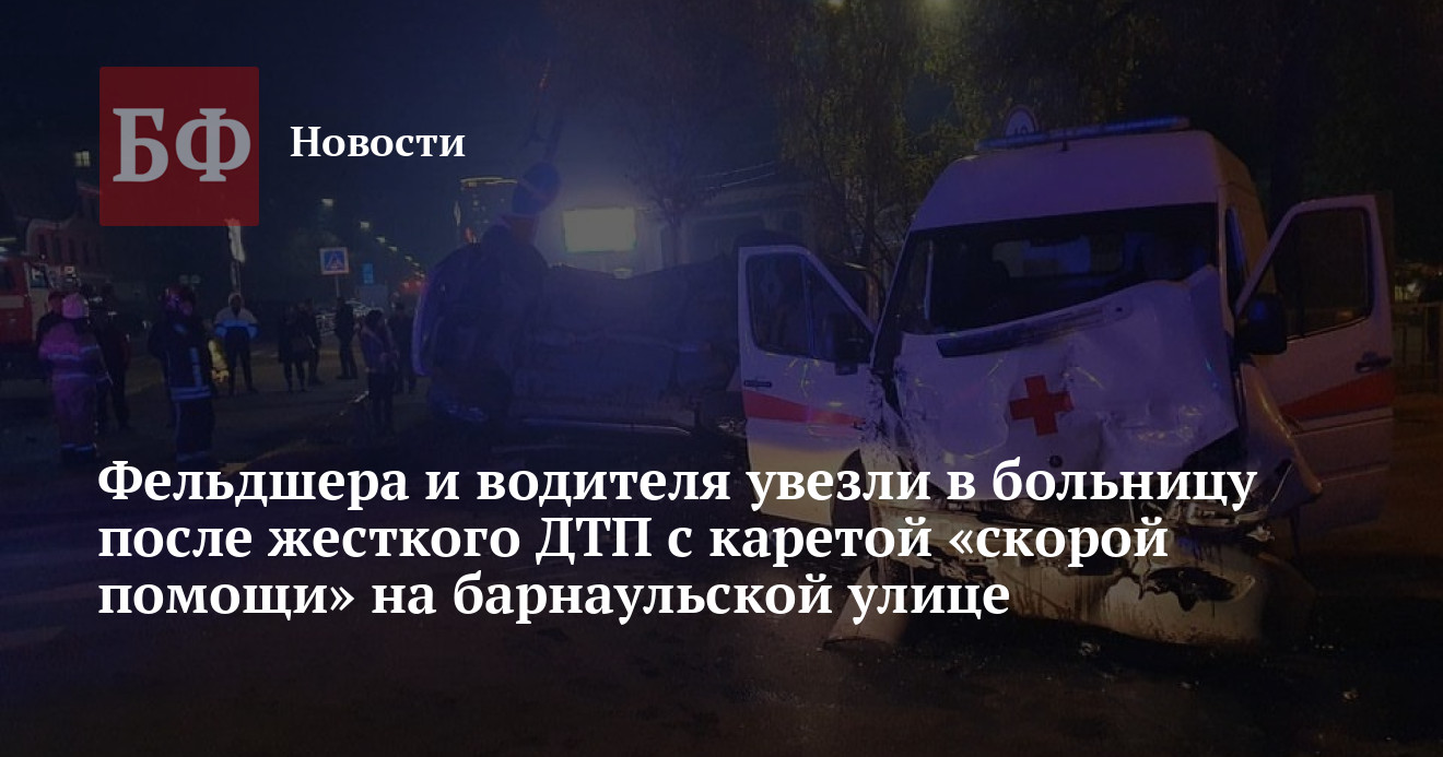 Сотрудники ГИБДД Барнаула устанавливают обстоятельства дорожной аварии с участием машины «скорой помощи», которая произошла накануне. Поздно вечером в старом центре Барнаула столкнулись неотложка и иномарка. В результате машина медиков получила сильные повреждения, а находившаяся внутри фельдшер была серьезно травмирована. Пациентов в момент ДТП в «скорой» не было.