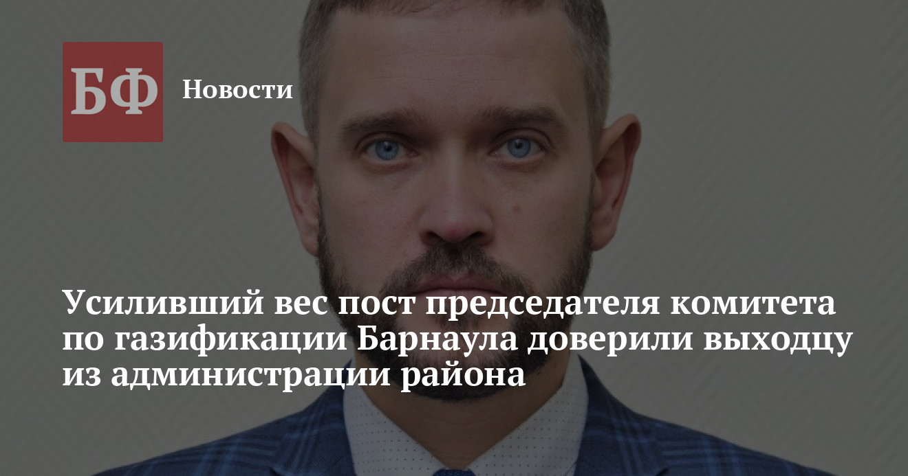 С 20 октября должность председателя комитета по энергоресурсам и газификации Барнаула занял 37-летний Александр Бавыкин. Соответствующее распоряжение подписал глава Барнаула Вячеслав Франк, сообщает пресс-центр мэрии. Отметим, что данная должность был вакантна почти два месяца после того, как прежний председатель Александр Кощеев подал в отставку.