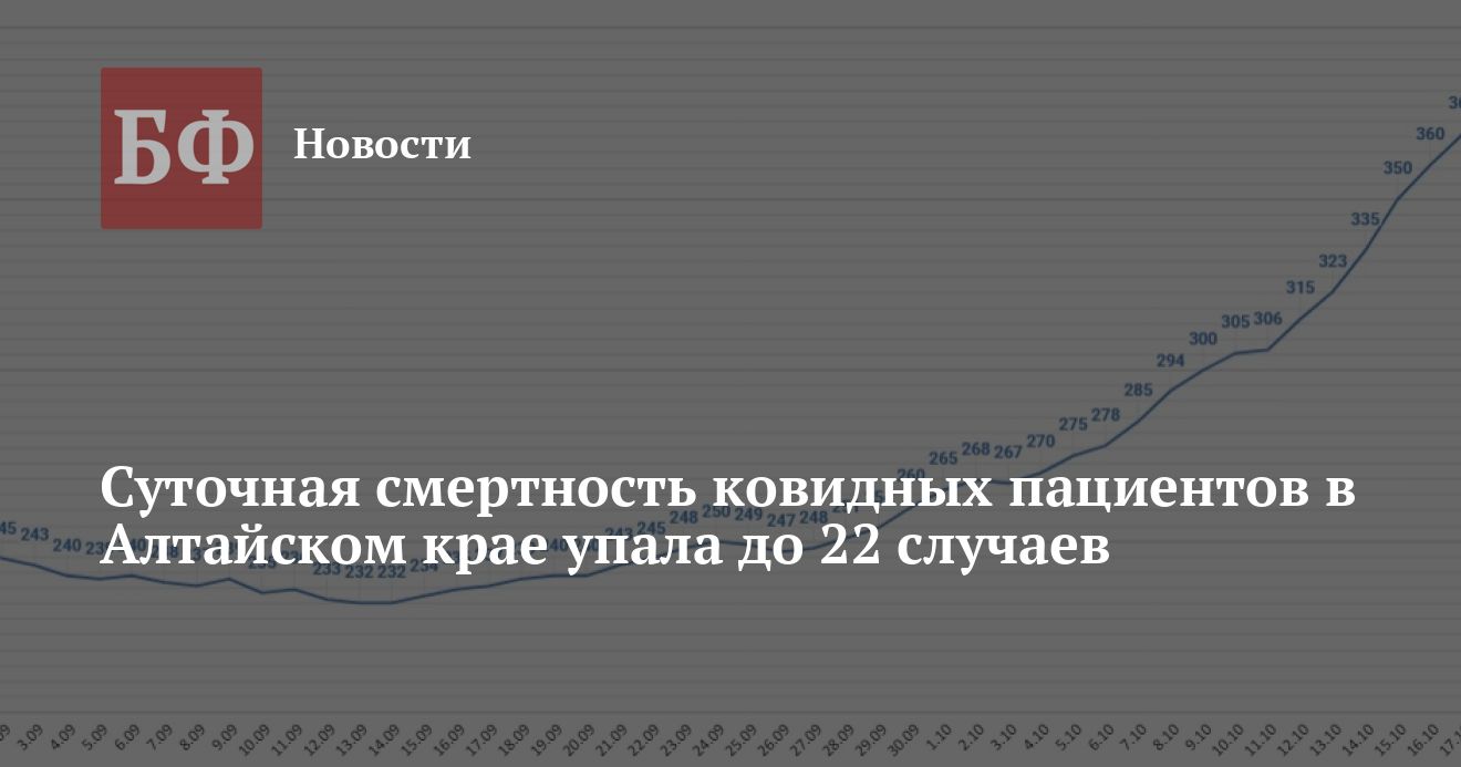 За минувшие сутки в Алтайском крае продолжился рост числа заболевших ковидом, выявленных заражений зафиксировано 382. При этом, по данным оперштаба, смертность ощутимо сократилась до 22.