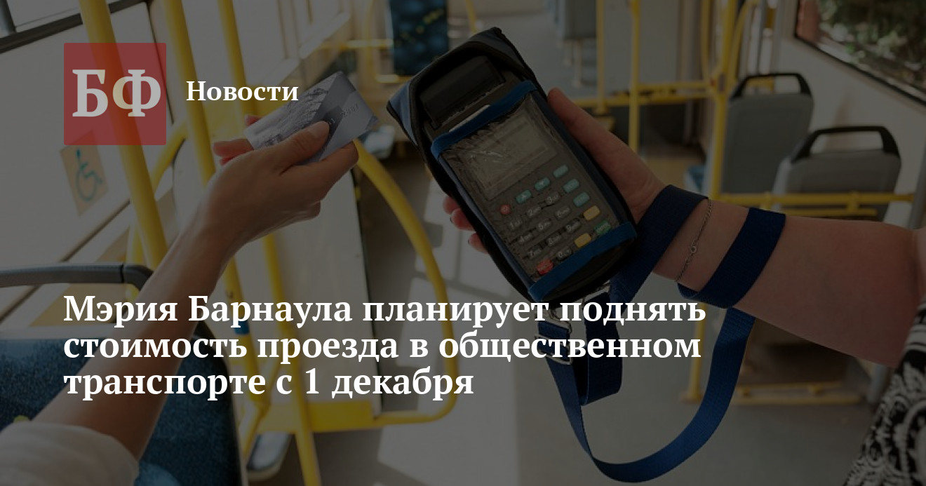На заседании Барнаульской гордумы 29 октября председатель комитета по дорожному хозяйству, благоустройству транспорту и связи города Антон Шеломенцев сообщил, что мэрия планирует утвердить рост цен на проезд в общественном транспорте с 1 декабря. Стоимость одной поездки в больших автобусах и горэлектротранспорте за наличность или по банковской карте, как уже анонсировалось, составит 28 рублей, сообщает ГТРК «Алтай». Ранее владельцы маршруток также изъявили желание поднять цены до 30 рублей, и возможно, за оставшийся месяц они официально обратятся в мэрию с таким предложением.