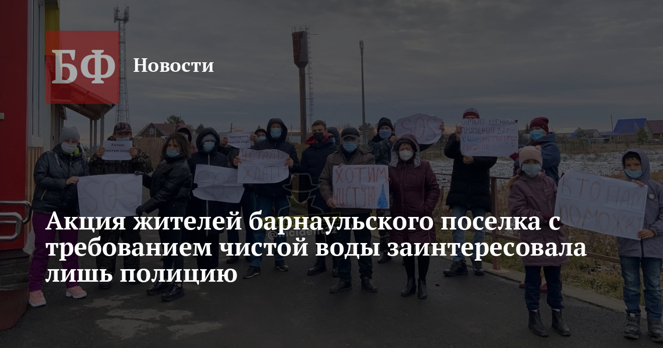 Накануне жители поселка Сибирская долина вновь вышли на улицу с целью обратить внимание властей на отсутствие нормального водоснабжения в их домах. В сообществе «Инцидент Барнаул» «ВКонтакте» они рассказали, что текущую из их кранов жидкость невозможно использовать ни хозяйственных целях, ни для питья. Решения проблемы жильцы не добились и, по мнению полиции, составившей административный протокол, сами стали нарушителями.