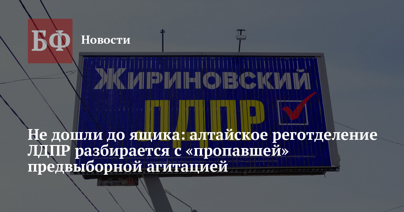 Алтайские либерал-демократы установили, что в Славгороде часть предвыборных агитационных материалов так и не дошла до избирателей. Об этом сообщили источники ИА «Банкфакс», причем существует версия, что данный инцидент в Москве якобы ставят в укор бывшему координатору реготделения ЛДПР в Алтайском крае Максиму Крайну, который баллотировался в Госдуму по этому округу. Нынешний координатор либерал-демократов в регионе Владимир Семенов подтвердил редакции, что в Славгороде действительно осталось несколько пачек не розданных агитационных газет, однако он не видит в этом ничего криминального. «Жириновец», заявил, что это обычная практика. В то же время у партии куда больше претензий к «Почте России», которая, по их данным, не исполнила свои обязательства.
