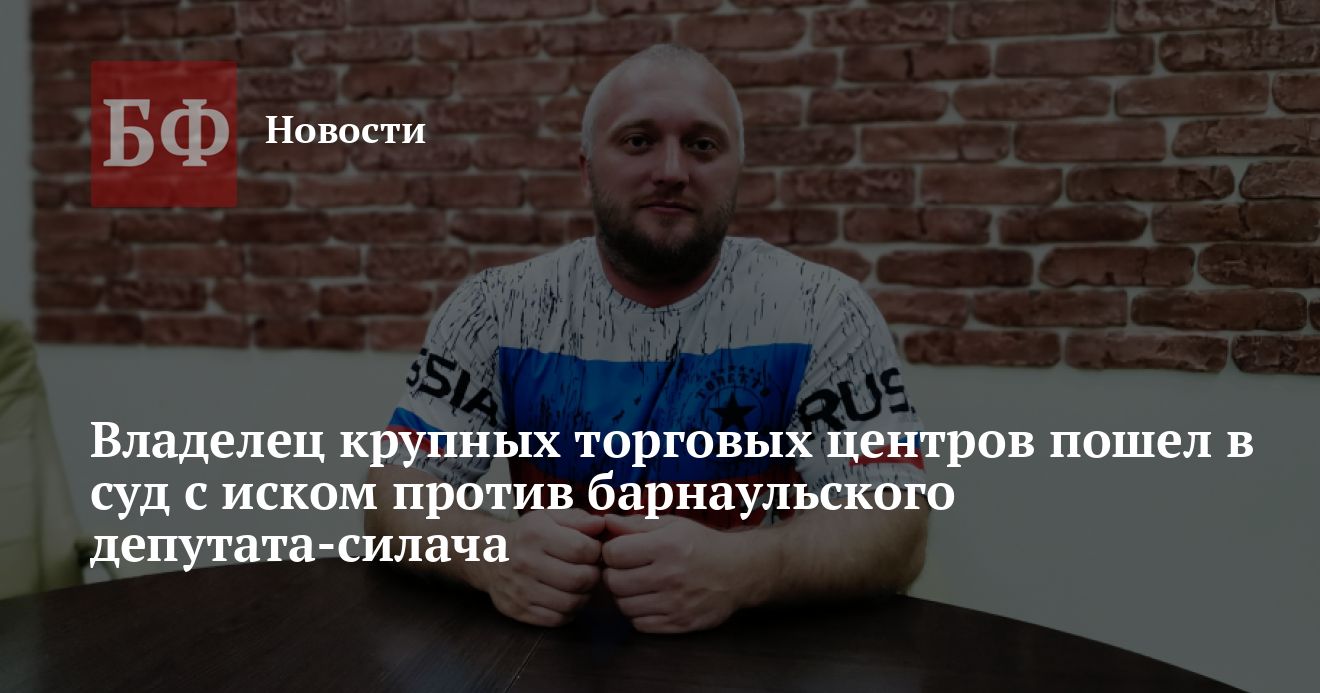 Барнаульская компания «Концерн СВ», известная как владелец востребованных в городе торговых центров, обратилась с иском к депутату Барнаульской гордумы и, как указано на сайте БГД, руководителю сети тренажерных залов «Рельеф» Алексею Меркулову. Согласно карточке на сайте Арбитражного суда Алтайского края, девелопер хочет получить от народного избранника крупную сумму денег.