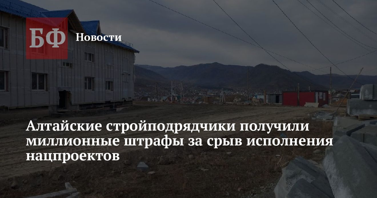 Прокуратура Республики Алтай проверила исполнение контрактов по национальным проектам в Горно-Алтайске, Усть-Коксинском, Онгудайском и Кош-Агачском районах. В результате в отношении шести подрядчиков были возбуждены дела об административных правонарушениях, связанных с оттягиванием сроков строительства. Им назначены штрафы на общую сумму 5,4 млн рублей.