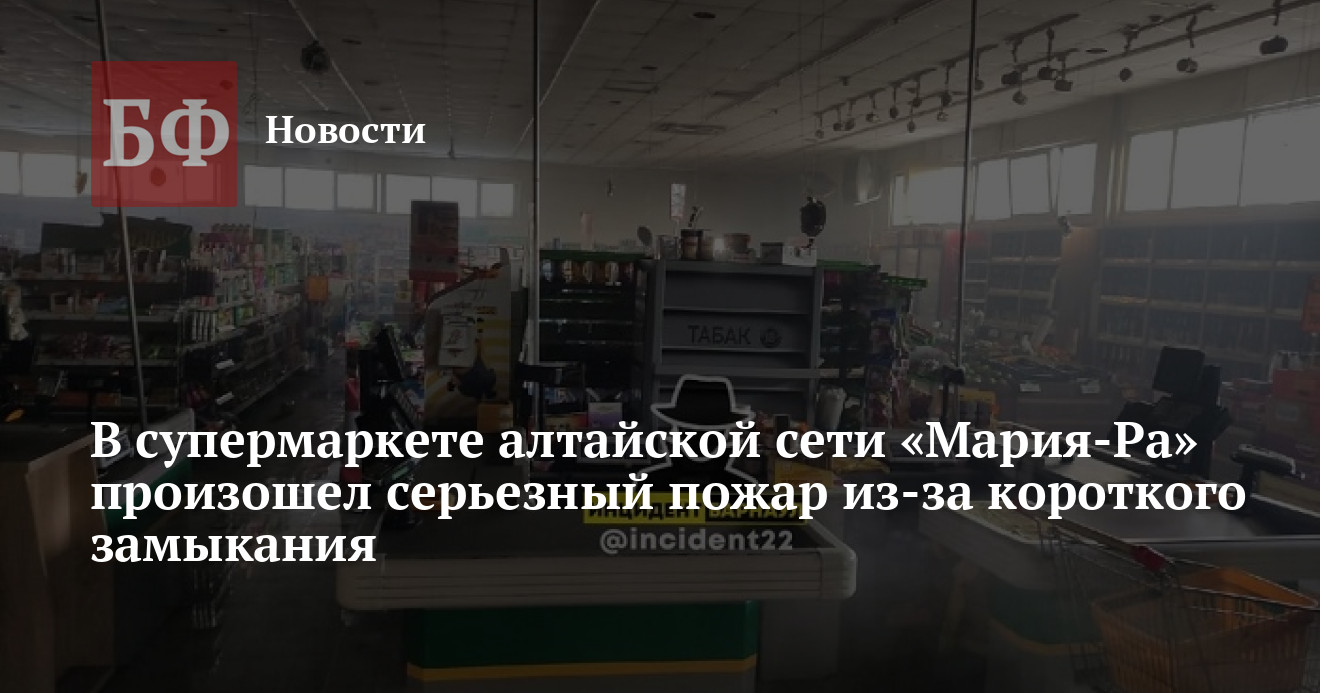 21 ноября сотрудники МЧС выезжали на масштабный пожар в торговом здании в Славгороде. Как сообщили очевидцы событий в группе «Инцидент Барнаул» «ВКонтакте», в одном из отделов произошло короткое замыкание. В результате возгорания пламенем объяло помещение супермаркета «Мария-Ра». Спасателям понадобилось почти 1,5 часа, чтобы справиться с пламенем. Пострадавших в ЧП не было.