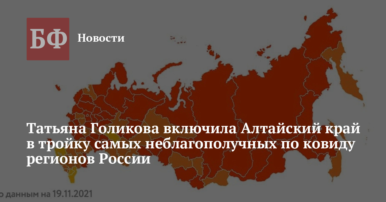 Зампред правительства РФ Татьяна Голикова отнесла Алтайский край, Бурятию и Кемеровскую область к регионам, где ситуация с заболеваемостью коронавирусом остается наиболее напряженной. При этом, как пишут «Ведомости», Алтай дает своим соседям по «ТОП-3» серьезную фору, отставая от них по уровню коллективного иммунитета и почти вдвое опережая по ежедневному приросту числа инфицированных.