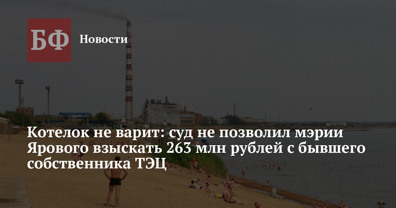 Апелляционная инстанция не удовлетворила жалобу мэрии Ярового, которая пыталась взыскать компенсацию в размере 263 млн рублей с бывшего собственника ТЭЦ — ООО «ТПК-Ресурс». Чиновники пытались доказать, что город понес убытки на эту сумму, которая была затрачена на закупку угля и материалов для устранения последствий ЧС на станции, произошедшей в отопительном сезоне 2019 года. Однако, согласно позиции суда, деньги были освоены в рамках обычных обязательств муниципалитета, который должен обеспечивать население теплоснабжением в рамках своих полномочий, и режим чрезвычайной ситуации на это никак не повлиял.