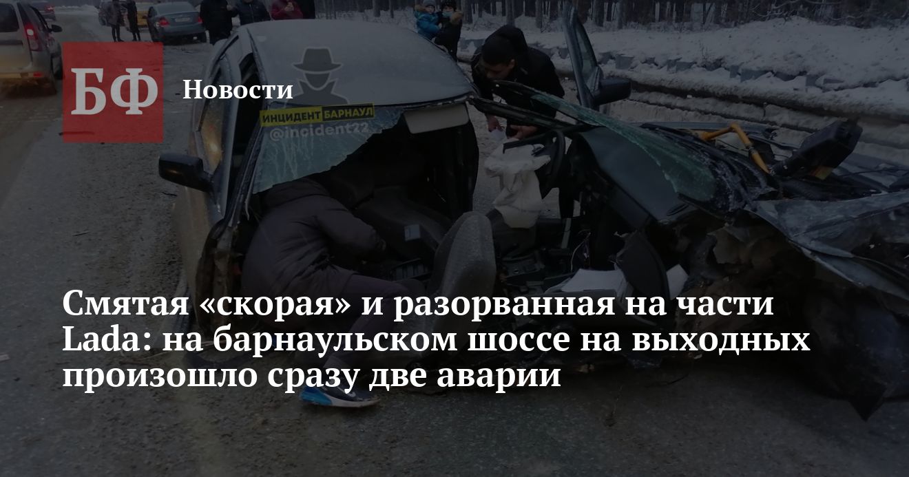 На минувших выходных жители Барнаула стали свидетелями сразу двух страшных аварий на шоссе Ленточный бор. Оба ДТП зафиксировали 27 ноября с разницей в несколько часов. Участниками одной из них стали карета «скорой помощи» и «КамАЗ» — ЧП не обошлось без пострадавших. Во второй аварии отечественное авто после столкновения с другой машиной разорвало на части. К удивлению общественности, в данном ДТП никто не пострадал.
