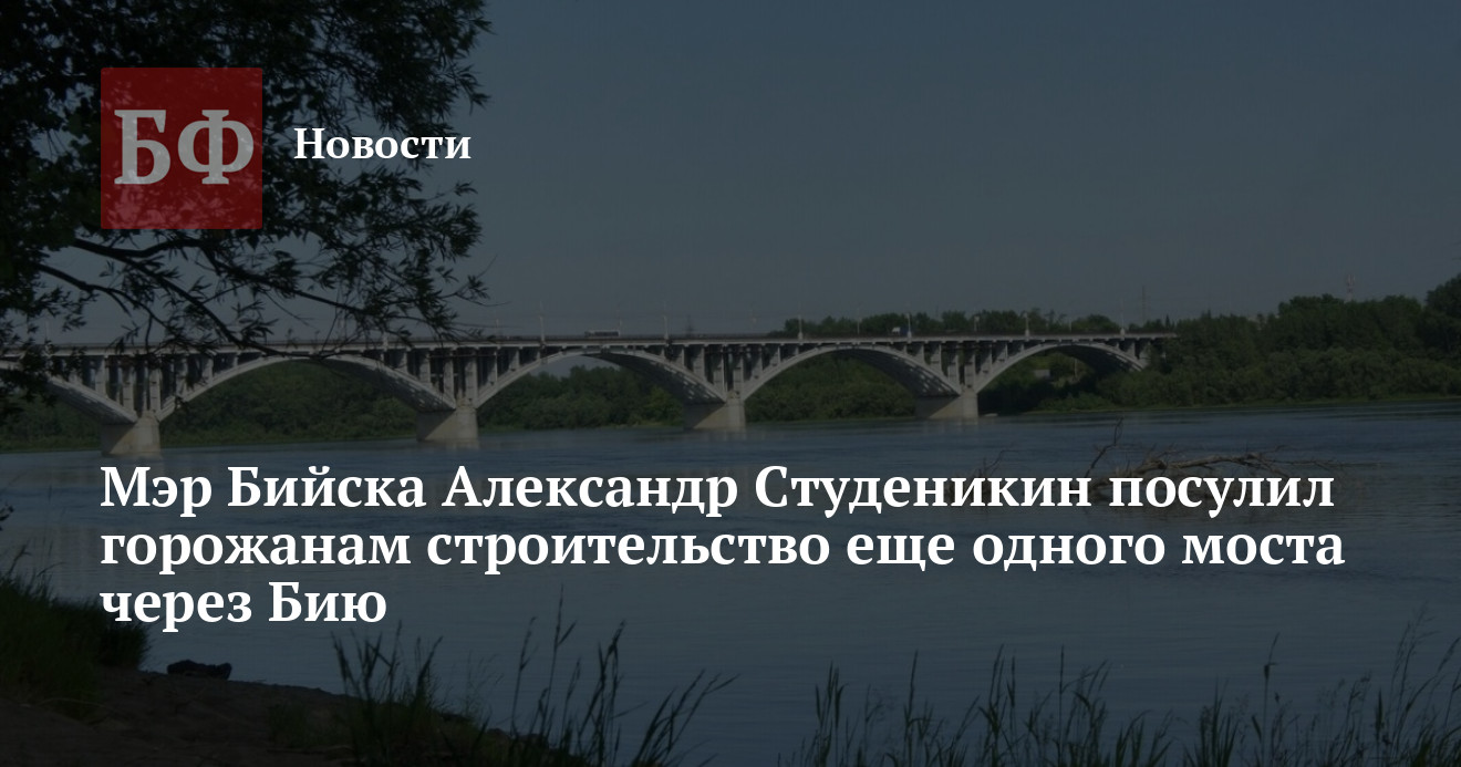 В Бийске в ближайшие годы планируют построить второй коммунальный мост в границах города. Об этом в ходе пресс-конференции в представительстве ТАСС в Новосибирске заявил глава муниципалитета Александр Студеникин. При этом на данный момент не ясны ни объемы финансирования строительства, ни его источники. Помимо этого мэр сообщил о запланированном на следующий год ремонте действующего коммунального моста. Запись с его выступлением была опубликована на странице пресс-центра в Facebook.