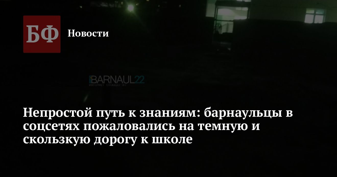 Жители Барнаула в сообществе Barnaul22 пожаловались на отсутствие благоустройства пешеходной дорожки, по которой их дети добираются в школу в районе Солнечной поляны. По пути следования к образовательному учреждению, по их словам, нет никакого освещения, что может стать критичным, учитывая гололедицу. В горадминистрации «Банкфаксу» пообещали позже прокомментировать ситуацию.