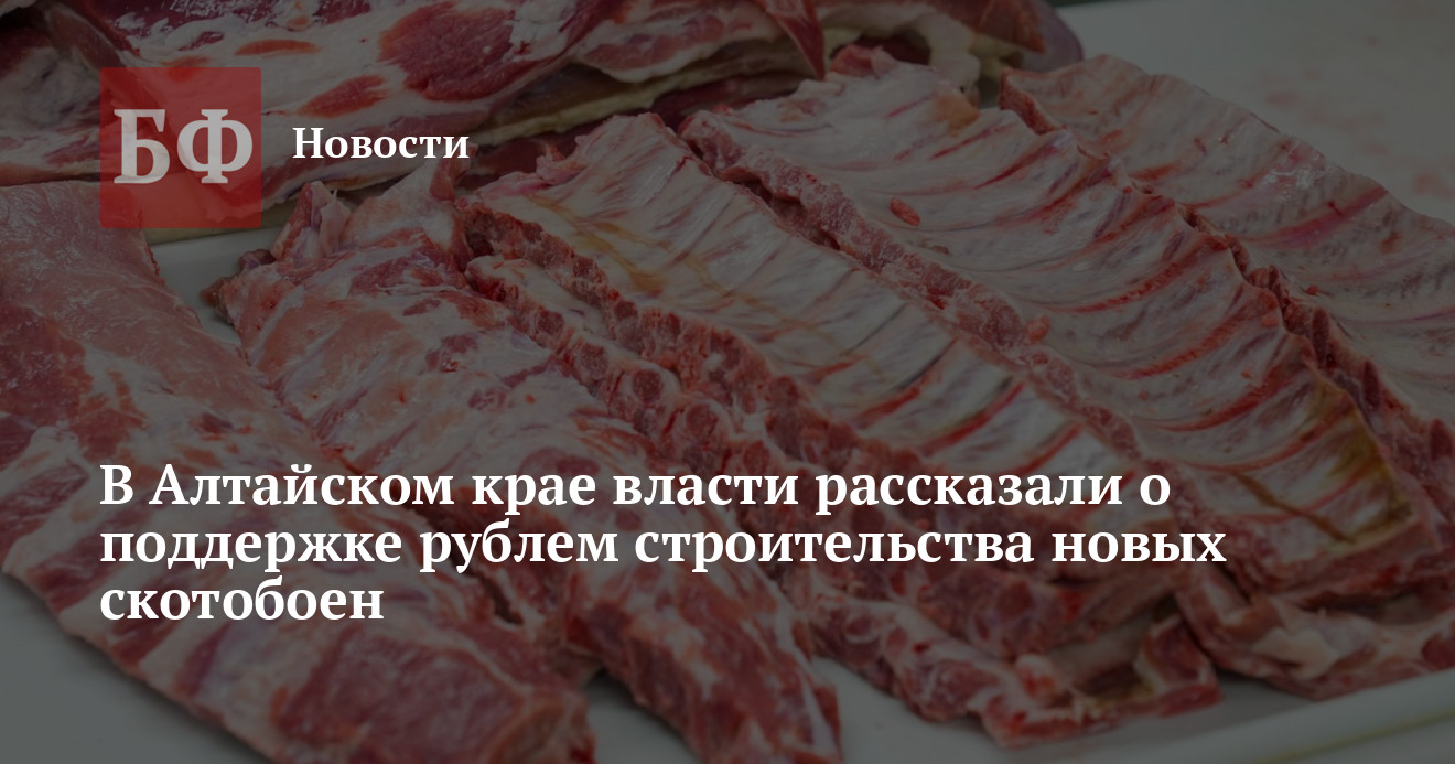 В Алтайском крае заговорили о мерах поддержки для предпринимателей, которые решат создавать скотобойни в сельских районах после введения запрета на реализацию «домашнего» мяса. Как сообщается на сайте управления ветеринарии Алтайского края, на эти цели забойщикам предлагают давать микрозаймы, а также компенсировать им часть затрат на закупку оборудования. Похожую работу проводили в Омской области, однако там власти готовились таким образом к введению запрета заранее.