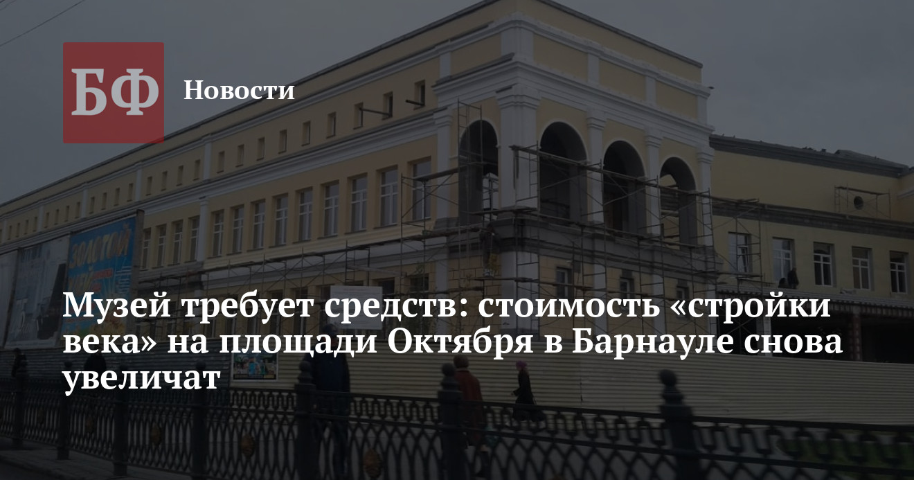 Государственный художественный музей Алтайского края, который должны достроить к декабрю 2022 года, снова подорожает. Как сообщил ТАССу замминистра строительства и ЖКХ региона Игорь Спивак, стоимость реализации проекта уже сейчас выросла до 1,7 млрд рублей, а в ближайшее время ее пересчитают в сторону увеличения еще раз из-за роста цен на стройматериалы. Не исключено, что это не последний пересмотр.