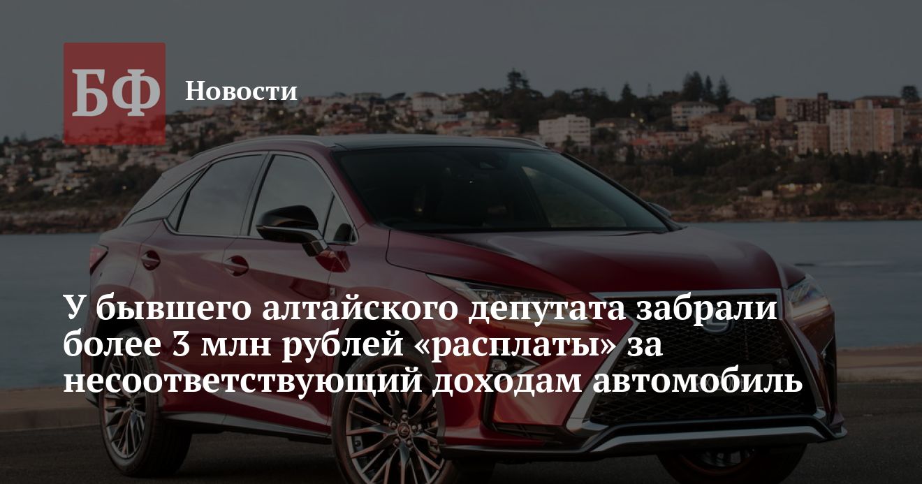 В связи с тем, что покупка нового Lexus не соответствует заработку депутата, прокурор обратился в суд с целью взыскать с него авто в пользу государства. Однако Тальменский районный суд отказал в удовлетворении требований, мотивировав это тем, что избранник якобы использовал заемные деньги. Судя по всему, вопросов о том, как ему предоставили кредит на 3,4 млн рублей с таким доходом, у суда не возникло. Как бы то ни было, надзорное ведомство подало апелляцию, и Алтайский краевой суд отменил решение первой инстанции.