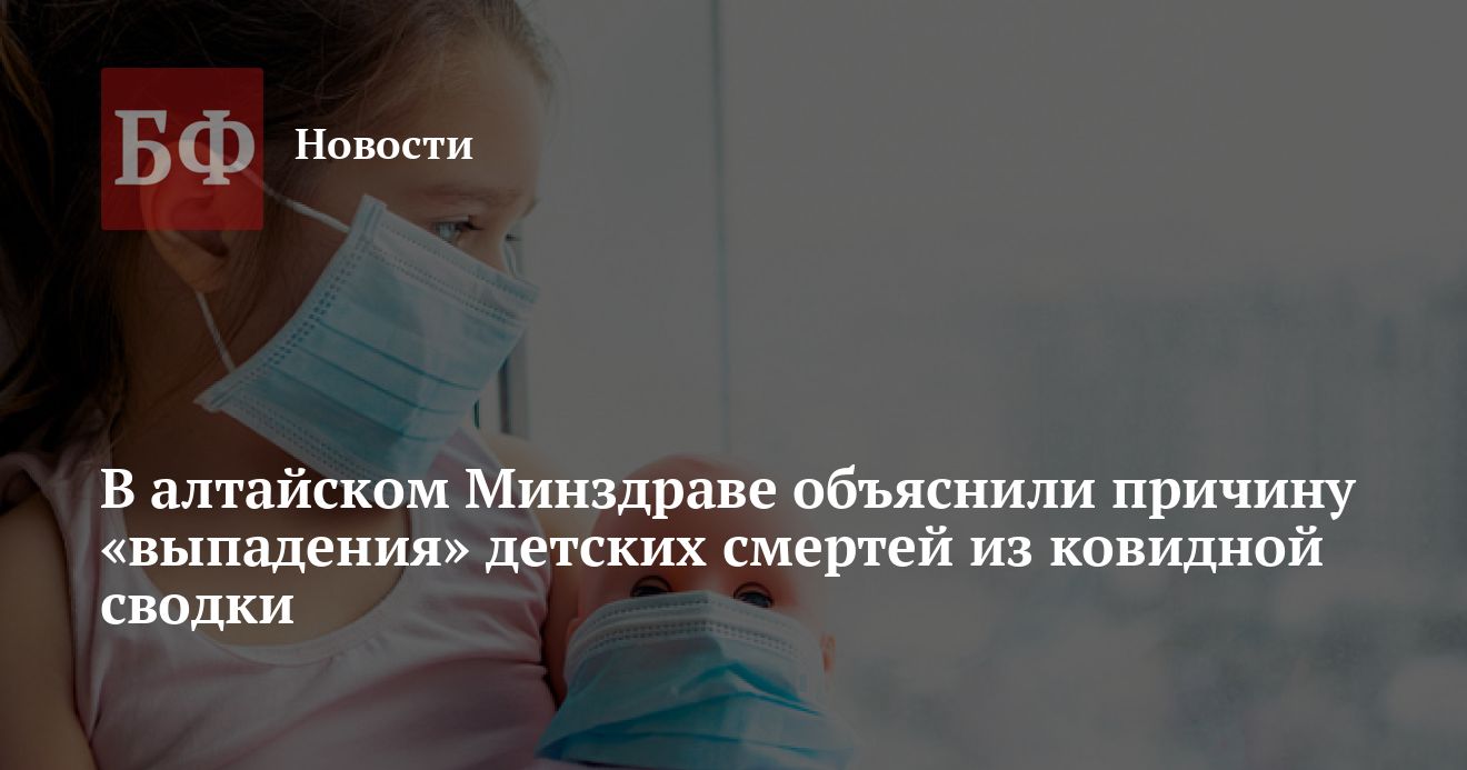 В министерстве здравоохранения Алтайского края наконец разъяснили, почему факты смерти детей, заразившихся коронавирусом, не попали в общую сводку оперштаба. Наблюдатели обращали внимание ведомства на это несколько дней, после того, как стало известно о кончине несовершеннолетних. Как заявили в Минздраве, причиной их гибели стал не коронавирус, а другие тяжелые заболевания, поэтому в сводку их включать и не стали. В то же время из релиза ведомства следует, что один из детей все же умер именно от коронавируса. В связи с этим логика Минздрава осталась непонятна. Позже представители ведомства уточнили «Банкфаксу», что указанный случай пока находится на экспертизе.