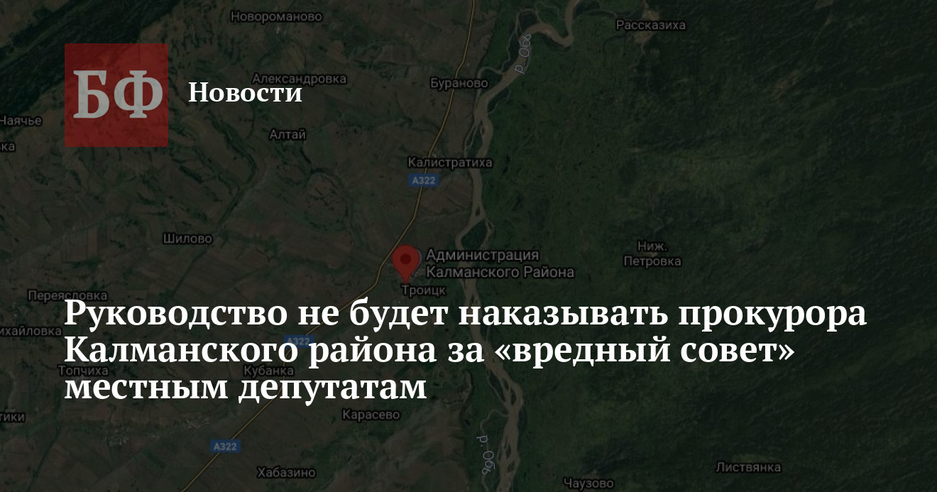 В прокуратуре Алтайского края сообщили «Банкфаксу», что не стали проводить служебную проверку по факту письма прокурора Калманского района, которым тот в июне текущего года подтолкнул «остатки» местного райсобрания провести внеочередную сессию. На ней нескольких депутатов лишили полномочий, а также было принято решение о назначении довыборов. Однако суды позже пришли к выводу, что заседание не было легитимным, и постановили вернуть мандаты «изгнанным» избранникам. Тем временем довыборы уже прошли, и район, таким образом, из-за совета надзорного органа оказался в непростой в правовом плане ситуации.