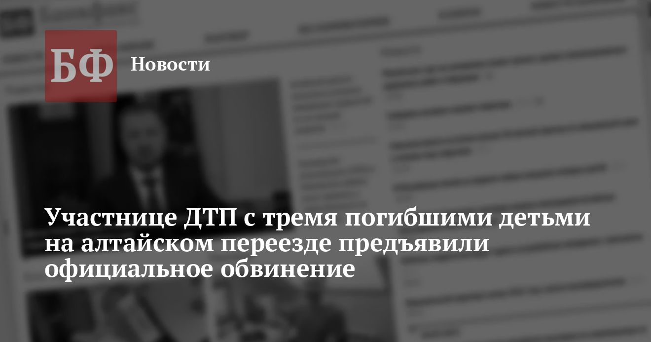 Четвертый отдел по расследованию особо важных дел СУ СКР по Алтайскому краю предъявил обвинение 43-летней учительнице из Тальменского района, которая была за рулем авто в момент трагического ДТП с поездом. В результате аварии погибло трое второклассников, еще один ребенок и сама педагог оказались в больнице. Теперь ей грозит от восьми до 15 лет лишения свободы.