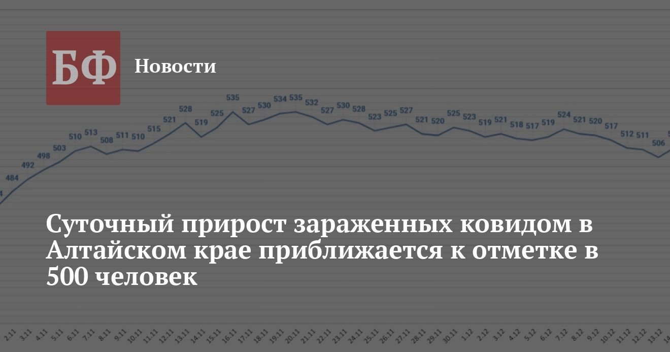 15 декабря по результатам тестирования на коронавирус было зафиксировано 503 положительных результата. Зараженные распределились по муниципалитетам следующим образом: Барнаул — 132, Бийск — 46, Рубцовск — 35, Заринск — 20, Славгород — 19, Камень-на-Оби — 17, Немецкий национальный район — 15, Первомайский район — 13, Советский район — 13, Благовещенский район — 12, Каменский район — 12, Завьяловский район — 10, Ребрихинский и Топчиъиский районы — по девять, Усть-Калманский район — восемь, Белокуриха, Красногорский, Бийский и Целинный районы — по семь, Алейск, Алтайский, Бурлинский, Кулундинский, Хабарский районы — по шесть, Крутихинский район и Чарышский районы — по пять, Новоалтайск, Новичихинский, Поспелихинский, Шипуновский районы — по четыре, Волчихинский, Заринский, Калманский, Курьинский, Мамонтовский районы — по три, Алейский, Егорьевский, Ельцовский, Змеиногорский, Зональный, Михайловский, Смоленский, Табунский, Третьяковский, Тюменцевский, Угловский, Усть-Пристанский, Шелаболихинский районы — по два, Баевский, Залесовский, Кытмановский, Локтевский, Павловский, Родинский, Романовский, Рубцовский районы — по одному.